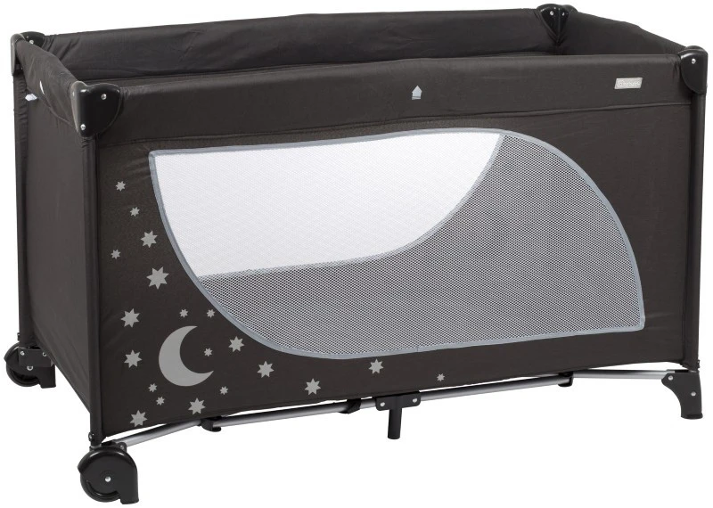 Onderaan het campingbedje zitten 2 wieltjes met remmen voor een gemakkelijke verplaatsing. Verder komt het campingbedje inclusief matrasje en is hij te gebruiken tot een maximum van 15 kg (ongeveer 3 jaar).