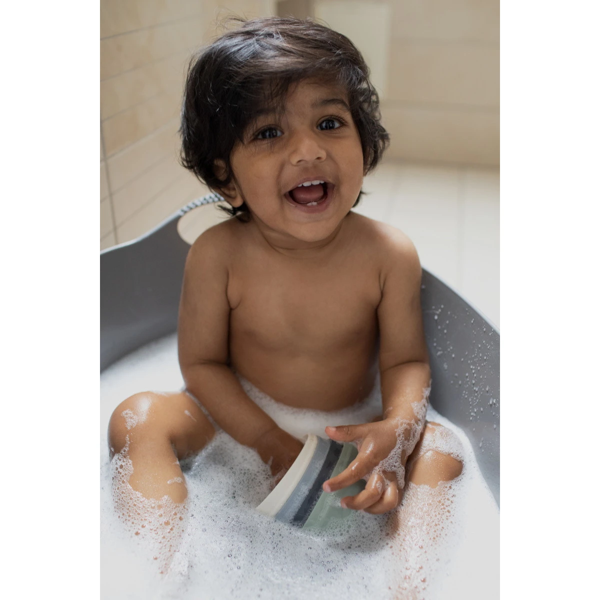 De toren is gemaakt van siliconen waardoor het uitermate geschikt is om mee te spelen in zowel zand als water – perfect om mee te nemen op reis dus! Doordat de toren is voorzien van subtiele patroontjes en gaatjes van verschillende groottes om een douche-effect te creëren heeft jouw kindje genoeg te beleven.