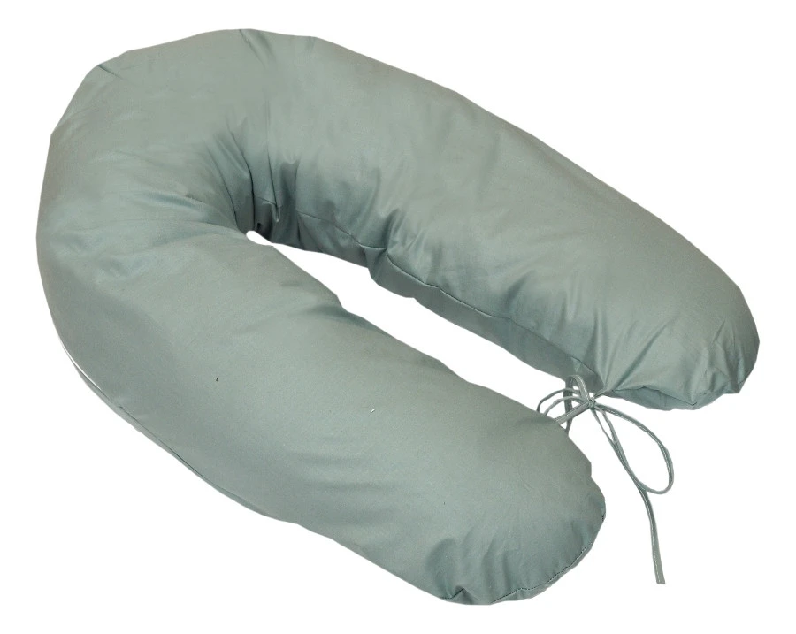 Het voedingskussen is voorzien van een afritsbare hoes die in de wasmachine op 40° gewassen kan worden. Om er voor te zorgen dat het voedingskussen rond blijft staan als je kleintje er op zit of tijdens het voeden, zitten er 2 touwtjes aan het einde van het voedingskussen die aan elkaar geknoopt kunnen worden. De lengte van het voedingskussen is 155 cm.
