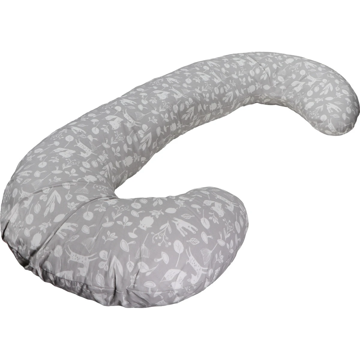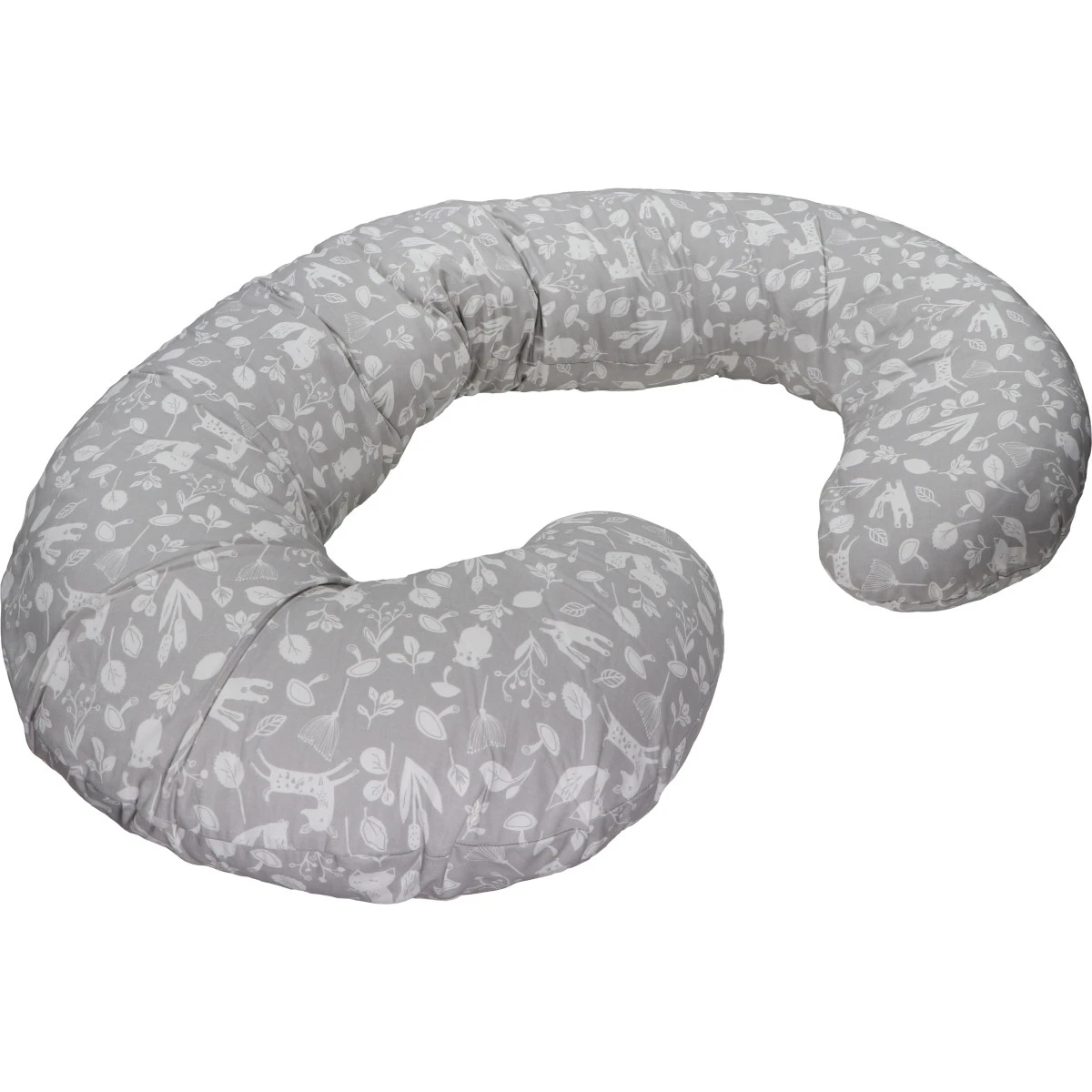 Het zwangerschaps- en voedingskussen heeft een leuke bloemen/dierenprint. De afneembare hoes, met de hand gewassen worden.