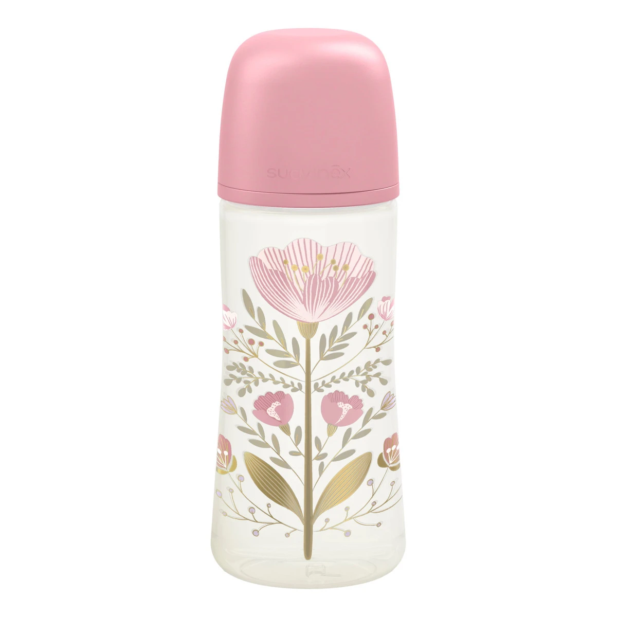 Wat een prachtige fles uit de Gold collectie van Suavinex! Het flesje is gemaakt van kunststof en heeft een fijne vorm die makkelijk is vast te houden.